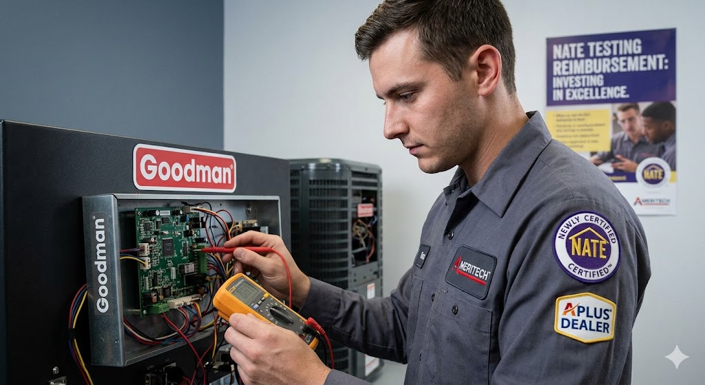 Goodman supports Ameritech’s pursuit of excellence through NATE Testing Reimbursements. This program allows Ameritech to: