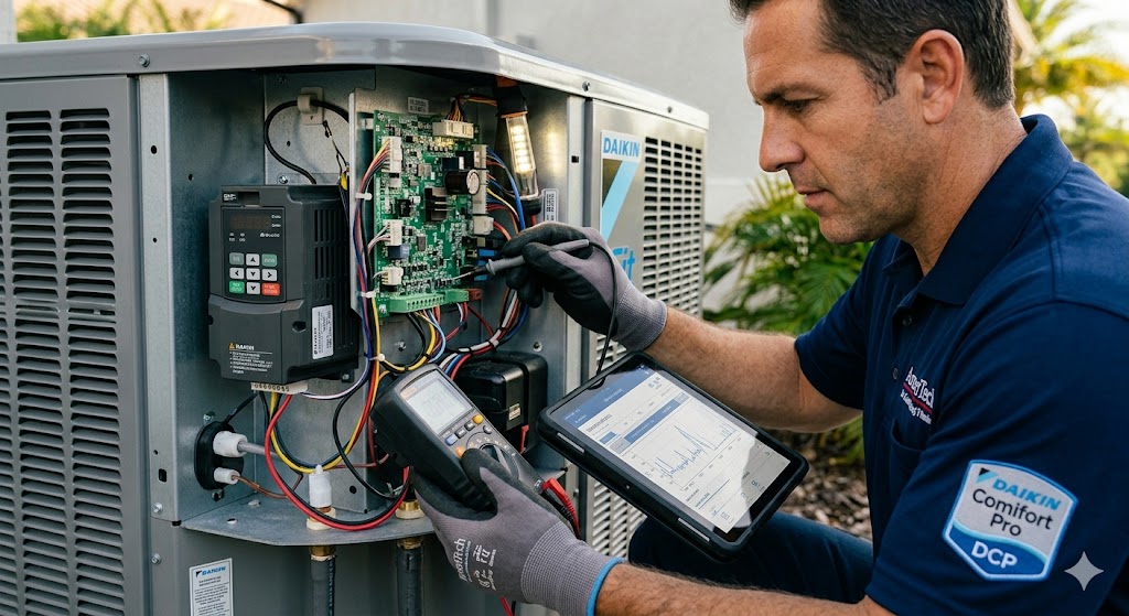 As a DCP dealer, AmeriTech has direct access to Daikin’s full portfolio of cutting-edge residential solutions, including the Daikin Fit—a compact, side-discharge smart HVAC system that provides premium inverter efficiency at a mid-range price point. These systems are significantly more complex than the “on/off” units of twenty years ago; they require specialized knowledge to calibrate correctly for Florida’s unique humidity.